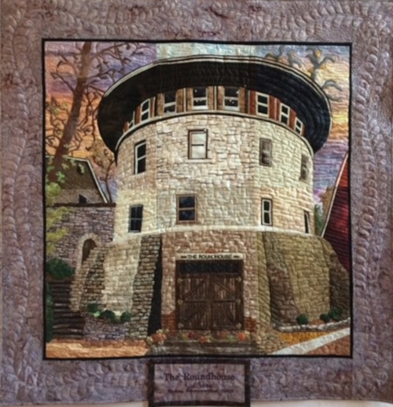 “The Roundhouse” – commissioned by former Guild president Twyla Pease to commemorate the completion of the structure’s renovation in 2002, this quilt now hangs in her Iowa home. Guild members Sue Hammer, Evelyn Camp, Therese Ramsey, Bonnie Fredrick, Margy Thompson and Deb Myers made the quilt.